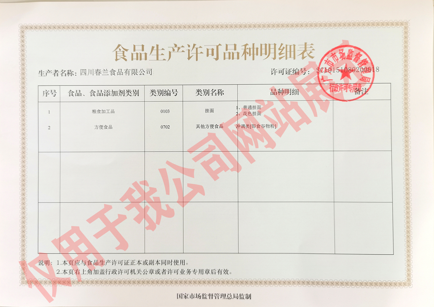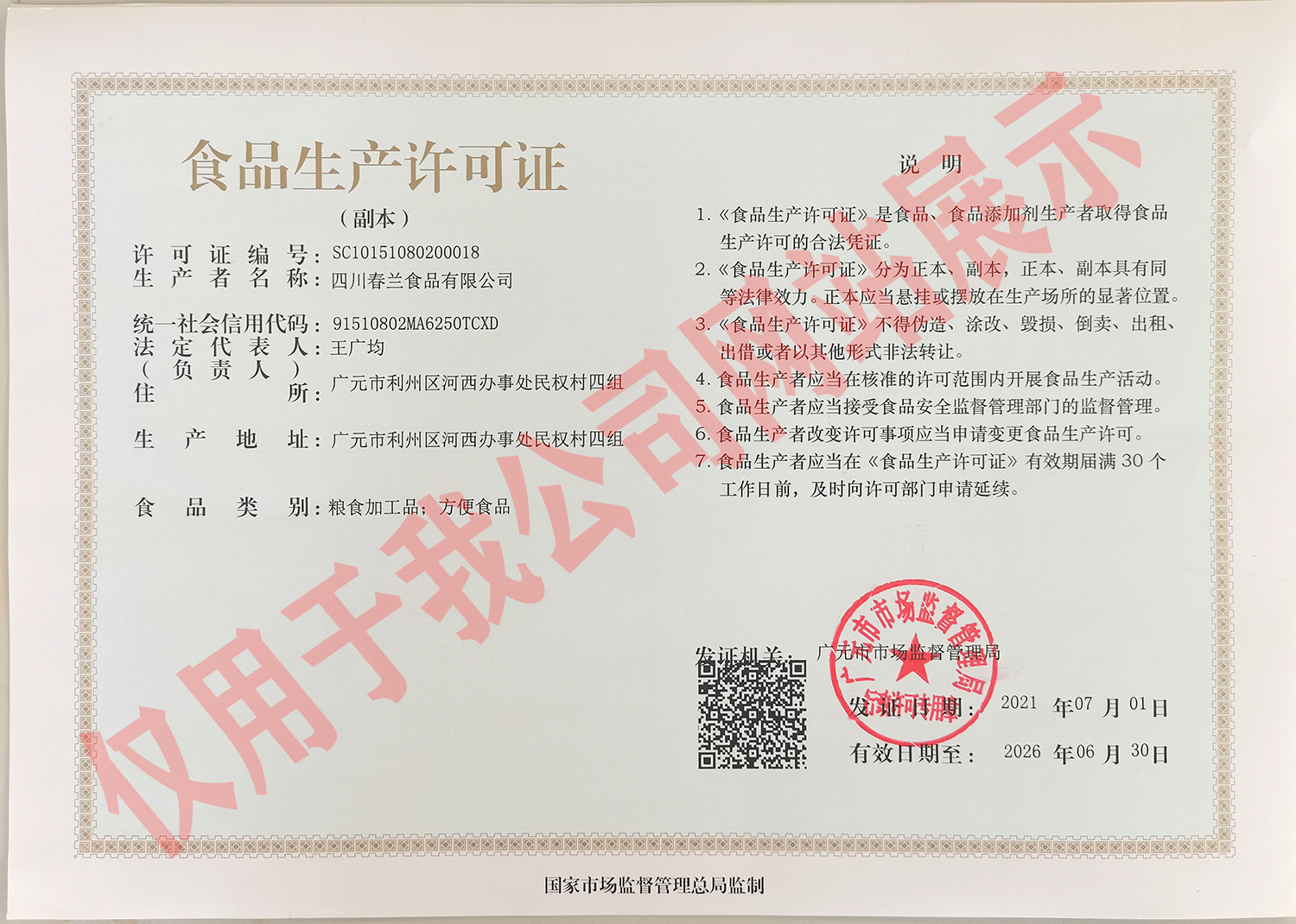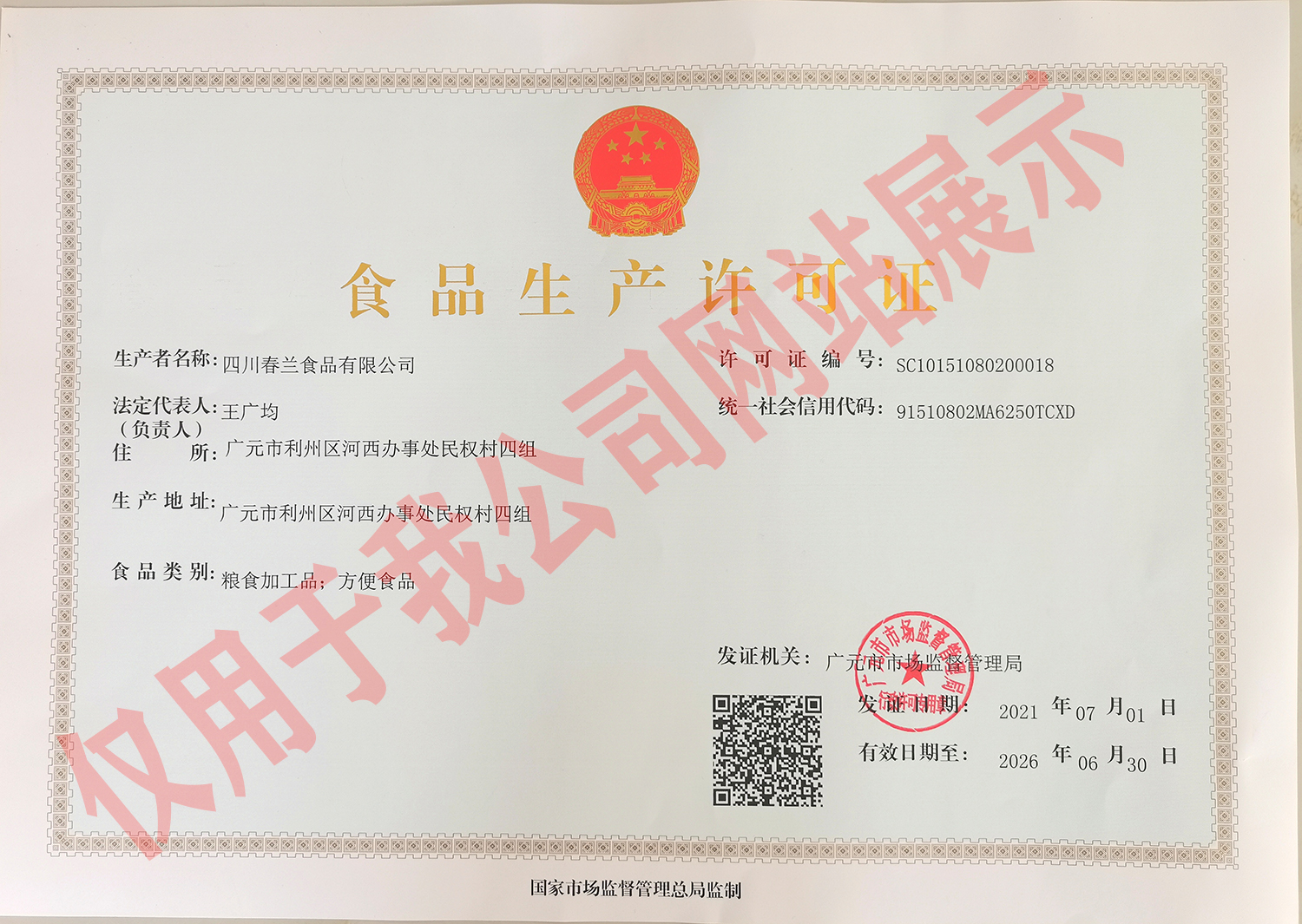 四川春蘭食品有限公司成立于2015年1月,主要從事生產天然曬干面、富硒沖調食品、富硒大米、富硒白酒等產品生產加工銷售企業。是以多元化、組合式發展為一體的綜合性企業。公司占地面積15余畝,注冊資金2000萬元,建有6000平方米標準廠房,擁有兩條全自動掛面生產線,一條沖調食品生產線,現有員工35人,專業技術及質量管理人員6人,具有年產1.5萬噸中高檔系列掛面、50噸富硒沖調食品和20噸富硒白酒的生產能力,年產值達八千萬元左右。公司研發生產的富硒掛面系列(富硒掛面、富硒香菇面、富硒苦蕎面、富硒粗纖維掛面、富硒綠豆面、富硒平菇面)以及普通曬干面為依托,公司注冊商標“悅福星”以地道的“農家味道”和“天然曬干”的特點,產品深受消費者厚愛。公司堅持以“質量促品牌,品牌促發展”的經營理念,加強品牌建設,提升質量管理,使企業在食品質量安全方面有了很大的提高,在今后的發展中不斷提升市場的競爭力。 ......         更多